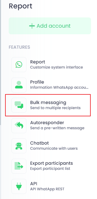 כפתור תומך בהודעות בכמות גדולה, תכונות אוטומטיות של מגיב ו-Chatbot. אם אתה צריך להשתמש בסוגים אלה של הודעות, אנא הגדר אותם תחילה.