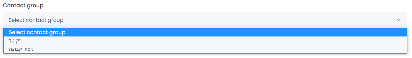 2.קבוצת אנשי קשר: בחר את רשימת אנשי הקשר שברצונך לשלוח.