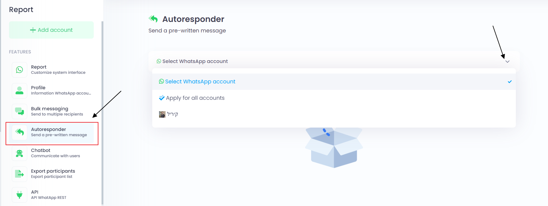 שלבים: נכנסים לאזור של תגובה אוטומטית. בוחרים בחשבון ממנו יצאו הודעות אוטומטיות.
