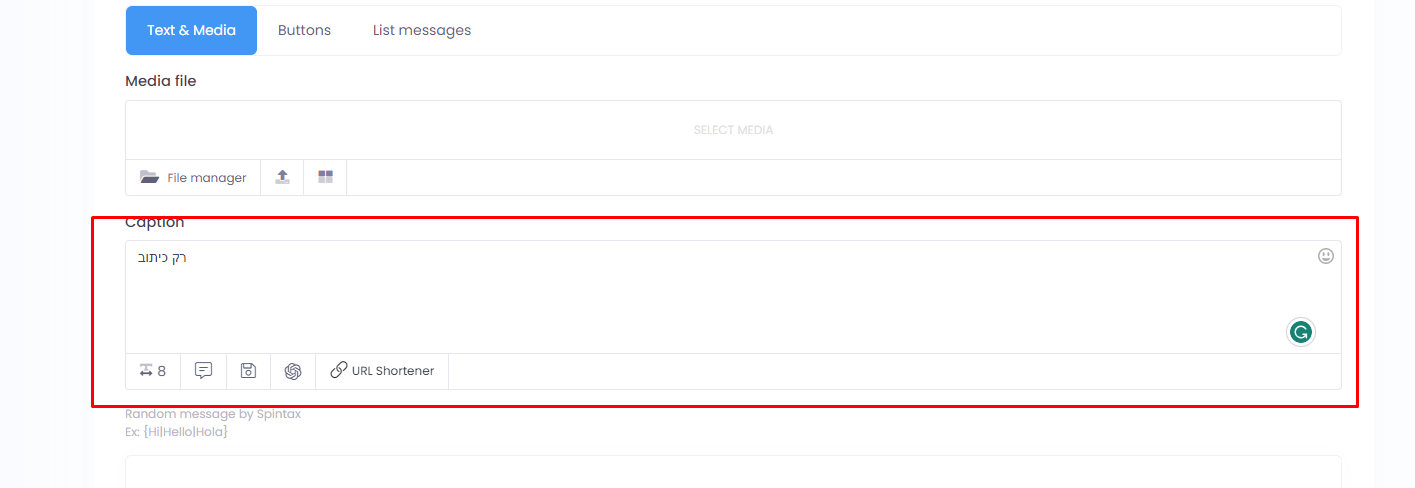 טקסט ומדיה: תוכל לשלוח הודעה הכוללת רק טקסט או כוללת גם טקסט וגם מדיה.